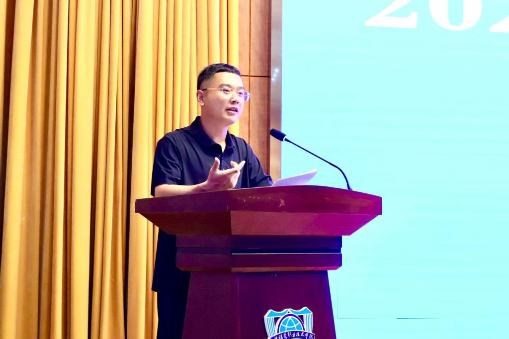 随后,副院长刘士局围绕岗前实习工作展开部署,提出三点核心要求。其一,严守实习基本规范与底线红线,强化安全意识,严格遵守实习单位规章制度及操作规程,确保人身与财产安全;其二,深刻认识岗位实习的重要意义,主动向企业导师请教,在实践中巩固专业知识、锤炼实操能力,积累职业经验;其三,构建 “学校 - 企业 - 家长” 协同保障机制,学院将定期与实习单位、学生及家长沟通,及时解决实习过程中出现的问题,做好协调管理与服务工作,为同学们的实习之路保驾护航。