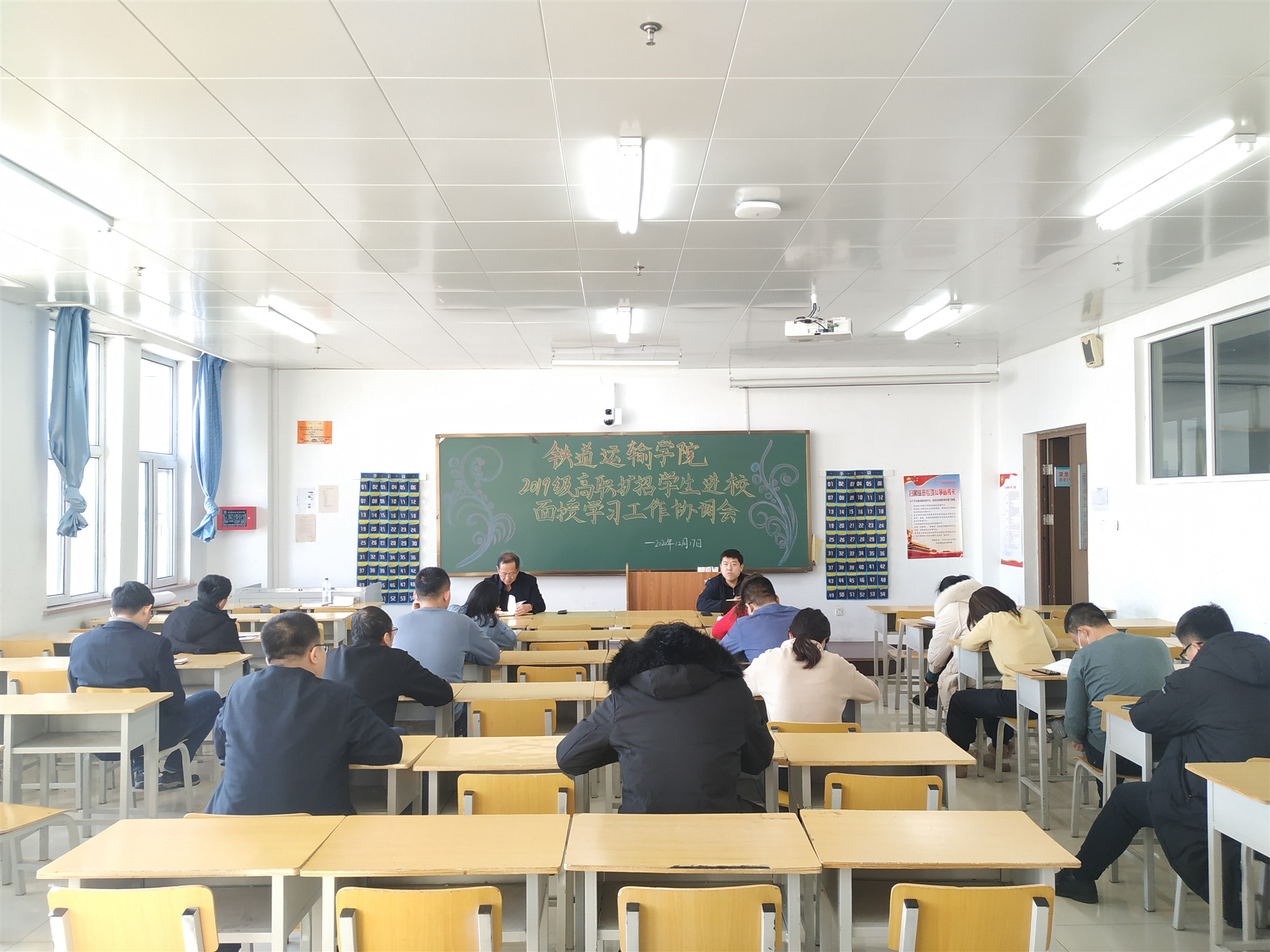 为全面落实好学校对高职扩招学生入校学习相关工作的各项要求,做好高职扩招学生教学和服务管理工作。12月17日中午,铁道运输学院在教学楼917室召开2019级高职扩招学生进校面授学习工作协调会,涉及到相关教学和学生管理的教师全员参加。会议由党总支书记张鑫主持。