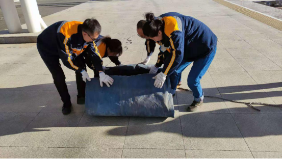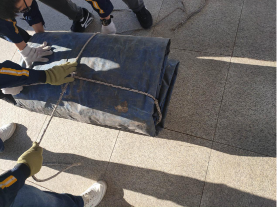 比赛过程中,各位老师一丝不苟按照接铁路篷布折叠标准和方法进行作业,确保折叠后的篷布规格为:1000mm×600mm×300mm,路徽和篷布号完全裸露,十字交叉法打捆后篷布能够经受多次搬运。