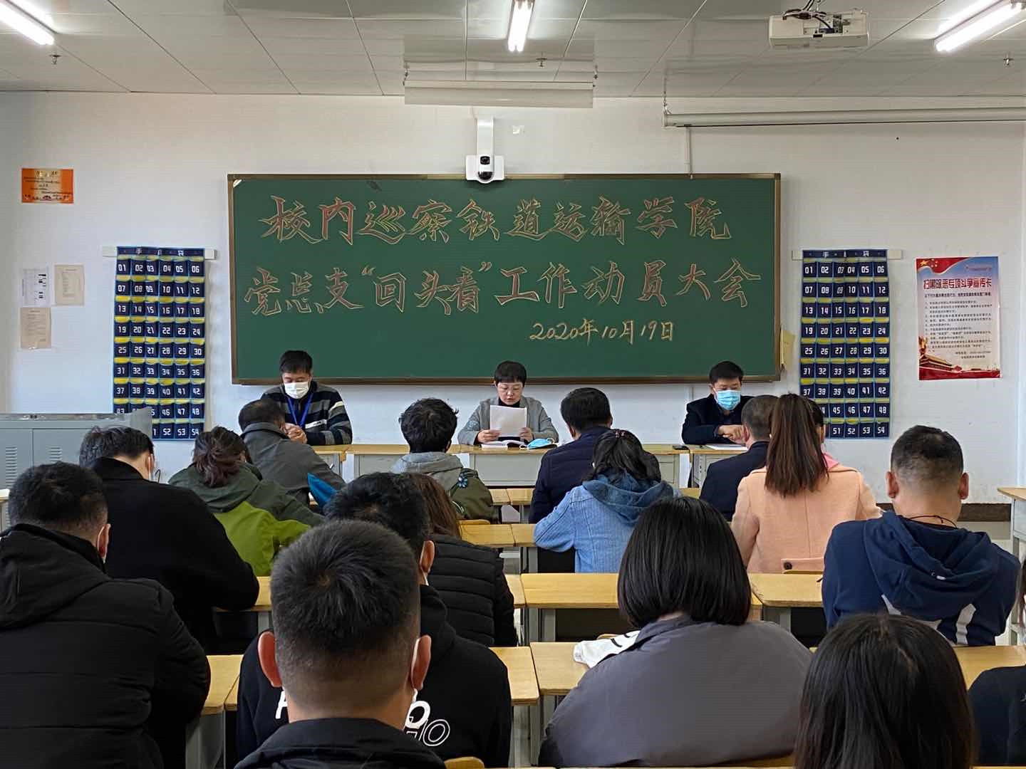 首先,张鑫汇报了《铁道运输学院党总支对校内巡察组反馈意见的自查整改情况报告》。随后,高丽娴宣读了吉铁职院党发【2020】63号文件《关于开展2020年校内巡察“回头看”的工作的通知》,指出巡察工作的重点在于强化政治定位,压实“两个责任”。通过“回头看”进一步深化政治巡察,被巡察单位必须全面提高思想认识。要强化措施整改,完善体制机制,被巡察部门要形成长效管理机制上的“防护墙”。同时要强化监督实效,推动整改落实,确保整改工作“回头看”取得实效。