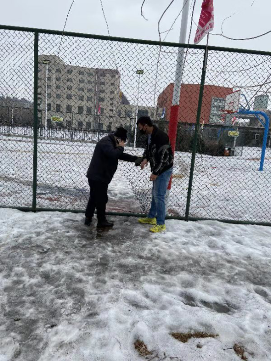 王贺同志:力所能及,从小事做起。疫情期间,榆树市体育文化活动中心为了防止社区内居民聚集打篮球,社区已经封闭了篮球场所有出入口,但是仍有少数人员在破坏篮球场铁丝网,王贺老师志愿加入到社区工作,在社区工作人员和王贺老师的共同努力下,共同将破损的铁丝网修补好。