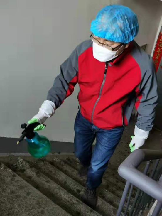 张力鑫同志:铁安里小区属于老旧小区,物业还不完善,单元楼梯间空间密闭,人员交叉感染机会较大。张力鑫同志积极主动负责其所居住单元楼梯间定期清扫,定时使用84消毒楼梯和酒精擦拭楼梯和门把手,减少了单元楼内人员交叉感染的风险。
