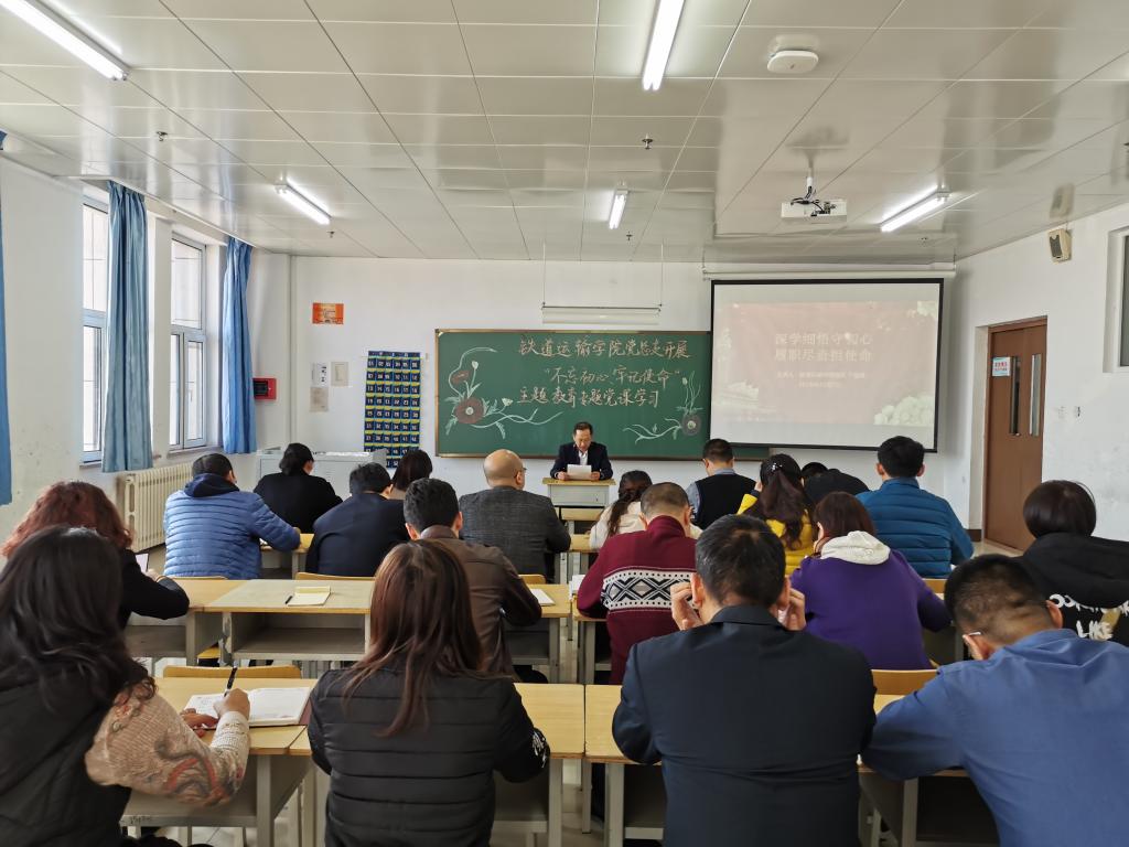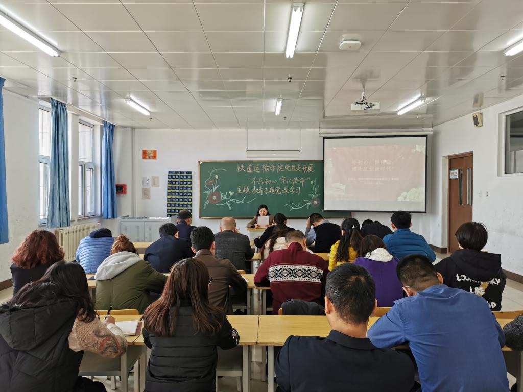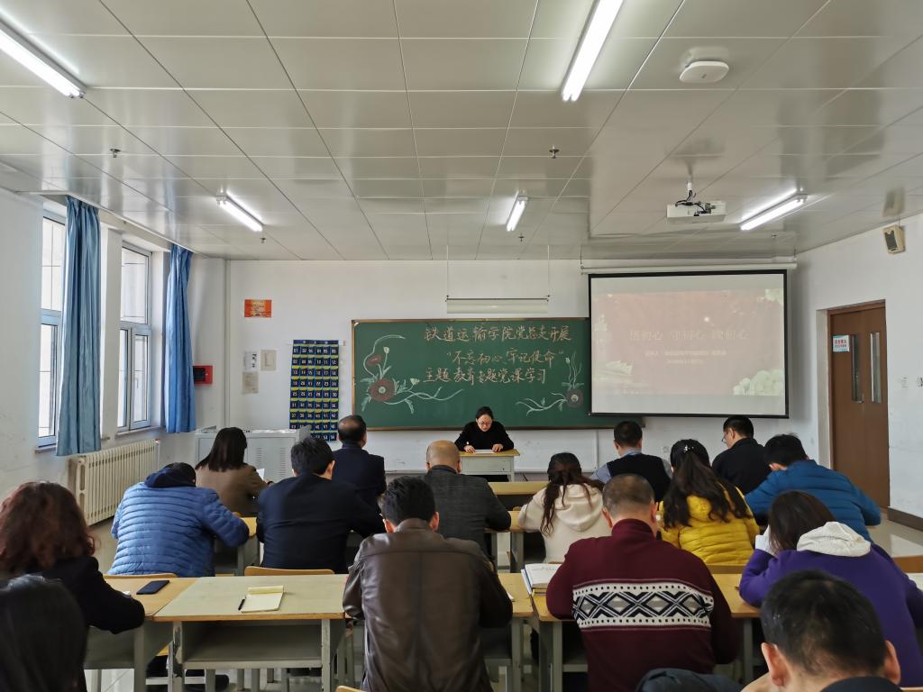 根据学校“不忘初心、牢记使命”主题教育要求,11月7日,铁道运输学院党总支开展了专题党课学习活动,党总支副书记李惠娟、院长于伯良、副院长吴荣波给分院全体党员上了一次高质量专题党课。
