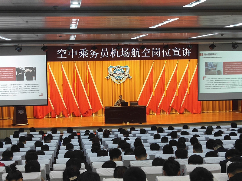 会上,李钰桐老师从民航现状、国内航空公司性质、招聘标准要求、职业前景、航司空勤薪资待遇等角度,结合自己在海南航空公司四年的空乘经验,为同学讲解了空中乘务员和机场航空岗位的岗位需求和应聘条件。并告知同学们要关注社会就业发展形势,转变就业观念,积极就业主动就业,实现高质量就业,打造美好人生。