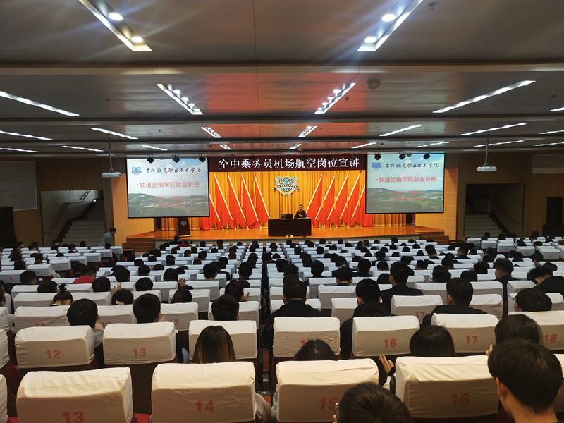 为了落实学院2019年学院就业工作会议精神,进一步推进铁道运输分院就业工作,积极拓展就业渠道,做到一对一精准服务,教育引导学生积极主动就业。4月19日下午,铁道运输分院邀请“凤天乘云”内航空乘就业培训机构讲师李钰桐,在图书馆报告厅做“空中乘务员机场航空岗位宣讲”报告会。分院党总支副书记李惠娟、院长于伯良、分院全体辅导员以及分院2017级学生参加了报告会。报告会由学办主任孟家辉主持。