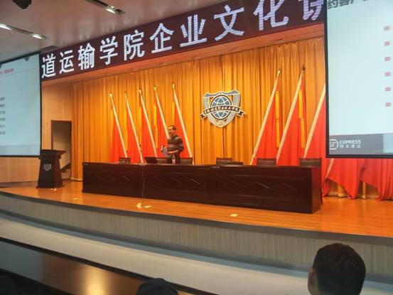 品骏快递是唯品会旗下全资子公司,专业从事快递、干线运输、航空运输、营销传媒和仓储管理等业务,注册资本10亿元。杜岩先生从事物流行业多年,具有丰富的物流企业用人和管理经验。在这场别开生面的讲座中,杜岩先生结合自身工作经历,围绕物流行业的发展历程及行业现状、物流行业的员工待遇及发展空间、企业的用人标准及如何在企业实现自我价值三方面,用幽默风趣的语言与学生们交流。