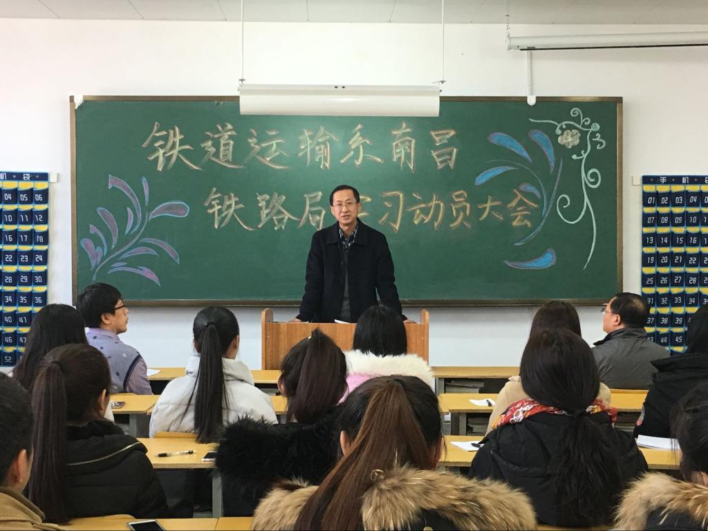 按照学院统一部署,铁道运输系2017届16名毕业生于2015年12月28日至2017年5月31日到南昌铁路局参加实习。为确保实习计划顺利完成,铁道运输系于2016年12月14日在教学楼东917教室召开了“铁道运输系南昌铁路局实习动员大会”。出席会议的有铁道运输系党总支书记李生、系主任于伯良、系副主任王笑然、指导教师朱鹏。会议由系学生工作办公室主任孟家辉主持。