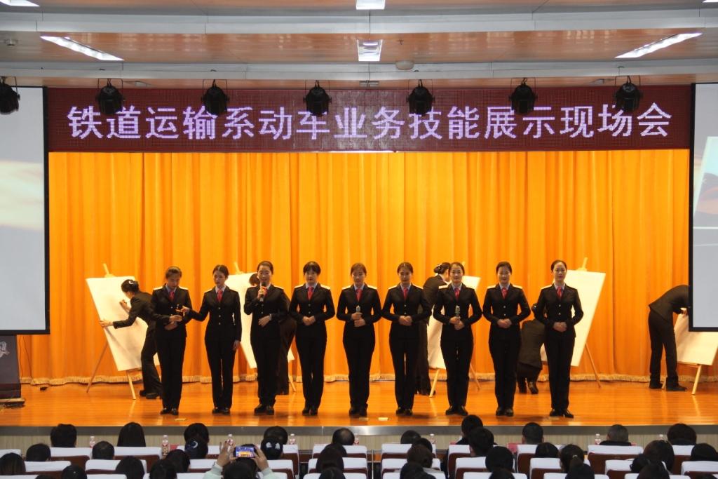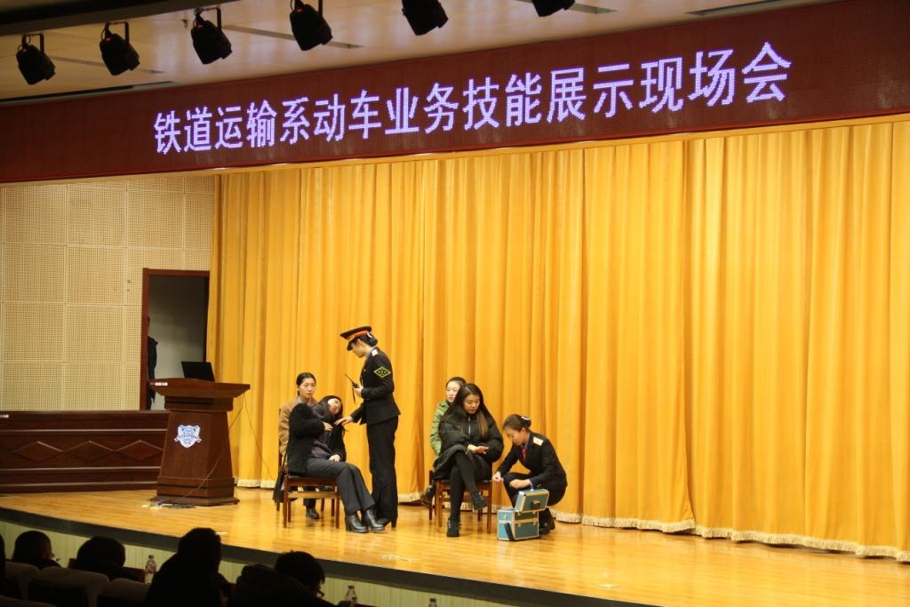 本次技能展示会为学生提供了一个专业知识与技能展示交流的平台,对营造良好学风与校风起到了积极的促进与推动作用。本次业务技能展示现场会由高铁乘务教研室承办,长白山技能名师范先云担任总策划,吴荣波、魏鸿儒、王宇三位专任教师担任指导教师,展示现场会共分成客运业务技能展示以及才艺展示两个部分。同学们相继展示了《铁路旅客运输规程》、《铁路旅客运输办理细则》、《铁路客运运价规则》、《中华人民共和国铁路法》一口清、背画《北南方结算站示意图》以及“五大干线”站顺,熟练的业务技能赢得了全场的热烈掌声。除此之外,学生们还自编自排了应急演练小品,对于客运规章的熟练运用并配合着惟妙惟肖的表演,展示了列车长、列车员的岗位标准以及作业流程,使现场师生更加直观的感受到铁路动车业务的办理,将现场会推向高潮。
