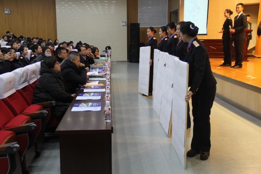 为进一步推动专业教育教学改革、促进内涵建设,提升学生专业技能和职业素养,全面展示教学成果,我院铁道运输系首届“动车业务技能展示现场会”于2016年12月6日在图书馆报告厅成功举办。本次现场会得到了沈阳铁路局吉林客运段以及学院领导的大力支持,吉林客运段副段长潘伟志、乘务和统计科副科长于金宝、助理工程师吕冰、客运组织员孔繁冬、职教科干事张大伟受邀出席担任技术指导,学院院长曹炳志、副院长王华、人事处处长王建军、教务处处长于素芳、学生处处长刘树全、团委书记盛继前、铁道运输系部分教职工和在校生参加了本次技能展示现场会。