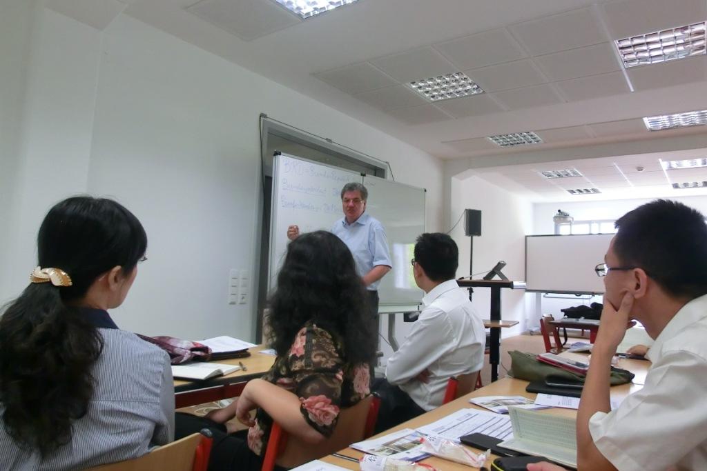 吴荣波和刘士局老师就“赴德国代根多夫应用科技大学研修班的学习心得”与全系教师进行分享,详细介绍了研修班课堂所学的理论知识,以及对德国工程师协会、校企合作企业的实地考察心得。