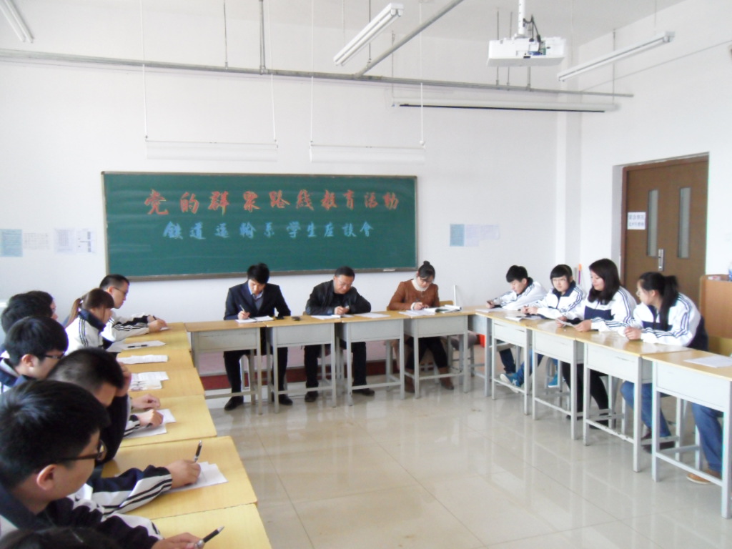 为切实开展党的群众路线教育实践活动,4月10日下午,铁道运输系党总支以年级为单位分别召开党的群众路线教育实践活动学生座谈会。系党总支书记李生、系办主任吴荣波、辅导员徐仁武以及2012级32名学生代表在教415展开座谈。系主任于伯良、学工办主任孟家辉、辅导员国实以及2013级22名学生代表在教420展开座谈。