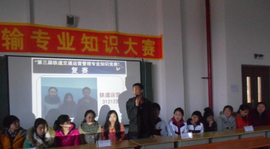 2013年11月8日和11月15日,铁道运输系在东401分别举办了“第三届铁道交通运营管理专业知识竞赛初赛、复赛”。这次比赛的目的是为了给同学们搭建互相交流学习的平台,激发他们的学习热情,同时提高学生职业技能鉴定的通过率。