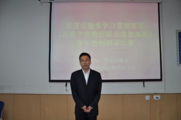 此次参赛的8名选手均为我系的青年教师。比赛中,每一位参赛选手都紧扣主题,以身边的先进人物和典型事迹为题材,结合学院创先争优和师德师风建设活动,展示了铁道运输系教师爱岗敬业、无私奉献、开拓创新、为人师表的师德风范,诠释了铁道运输教师把爱与责任贯穿教育始终的师德风貌和把爱的阳光播撒给每一个学生的奉献精神。
