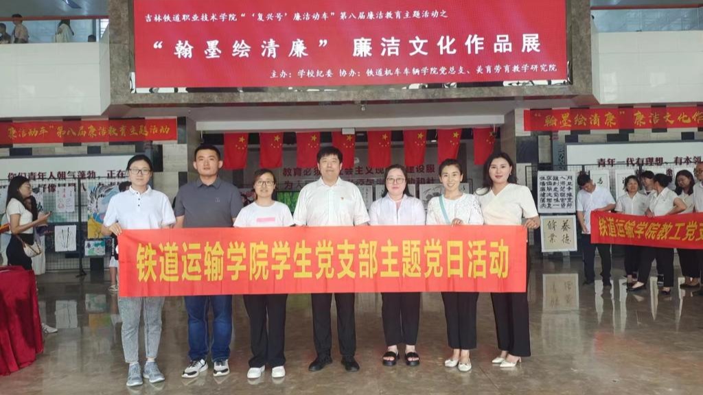 7月2日下午,铁道运输学院党总支在教学楼一楼开展“清风润校园 廉韵沁人心”主题党日活动,学院全体教师观看 “翰墨绘清廉”廉洁文化作品展。