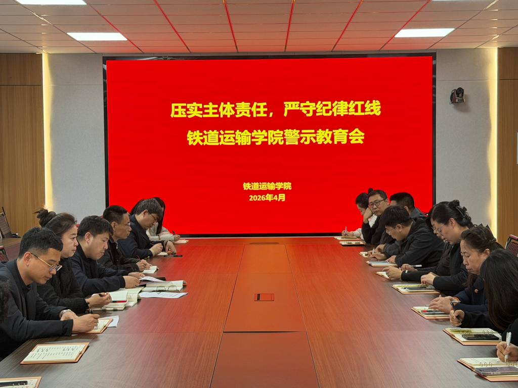 2026年4月7日,铁道运输学院在运输楼606会议室召开“压实主体责任 严守纪律红线”警示教育会。学院领导班子、党支部书记、教研室主任及教师代表参会,会议由党总支书记张鑫主持。