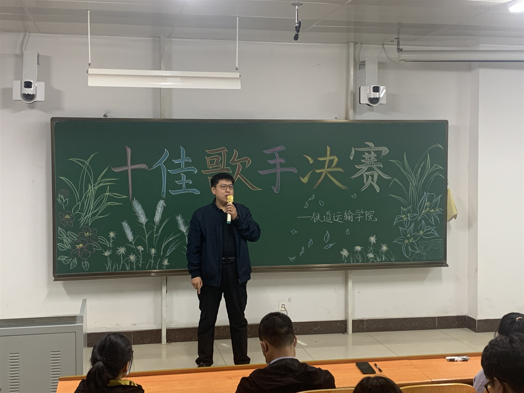 为丰富校园文化,努力营造活跃,和谐的校园文化氛围。铁道运输学院于2020年11月11日下午14:40分在阶梯教室西202举办“铁院好声音”十佳歌手决赛。铁道运输学院党总支书记张鑫、副书记韩阳、学办主任孟家辉、团委书记黄乐乐、2020级辅导员张闯出席比赛现场并担任评委。