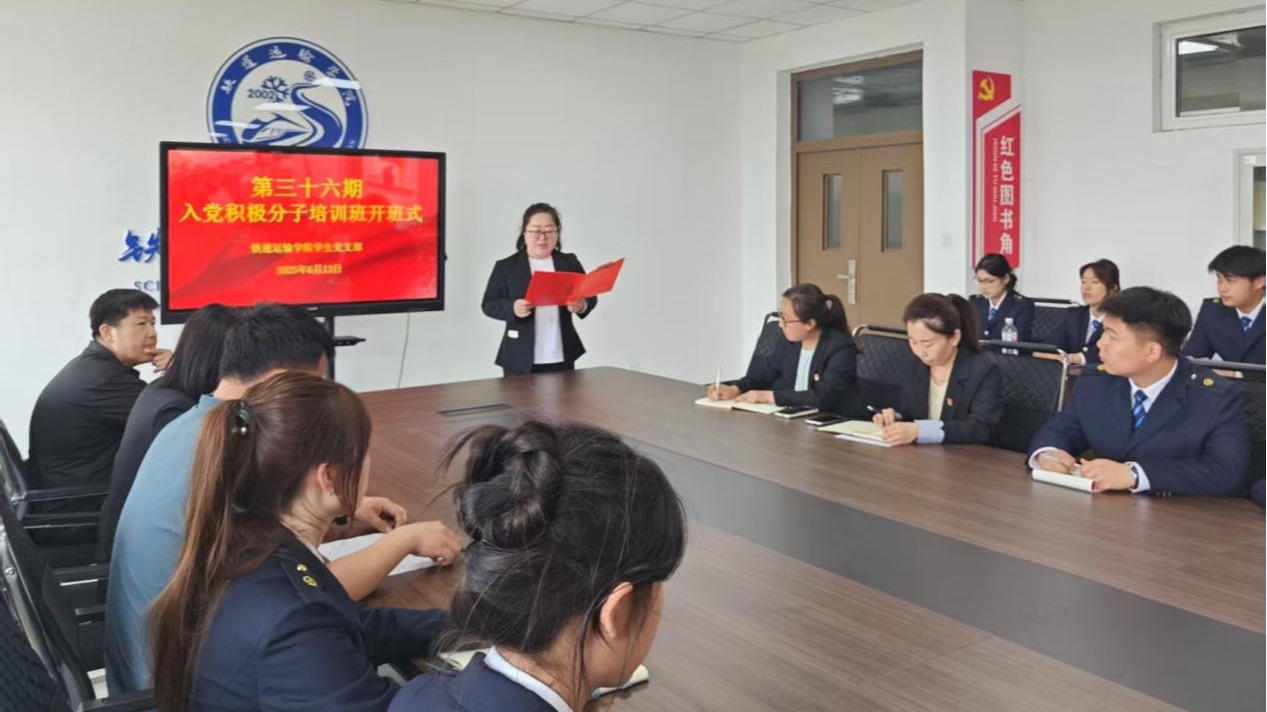 6月13日,铁道运输学院在党员活动室举办第三十六期入党积极分子培训班开班仪式。参加开班仪式的有铁道学院学生党支部全体教师和培训班学员,由学生党支部书记高露主持。