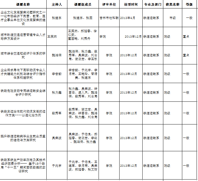 我系孙承旭老师主持的课题《铁道交通运营管理专业相对动态教学计划研究》获准立项“全国交通运输职业教育科研2013年项目”。