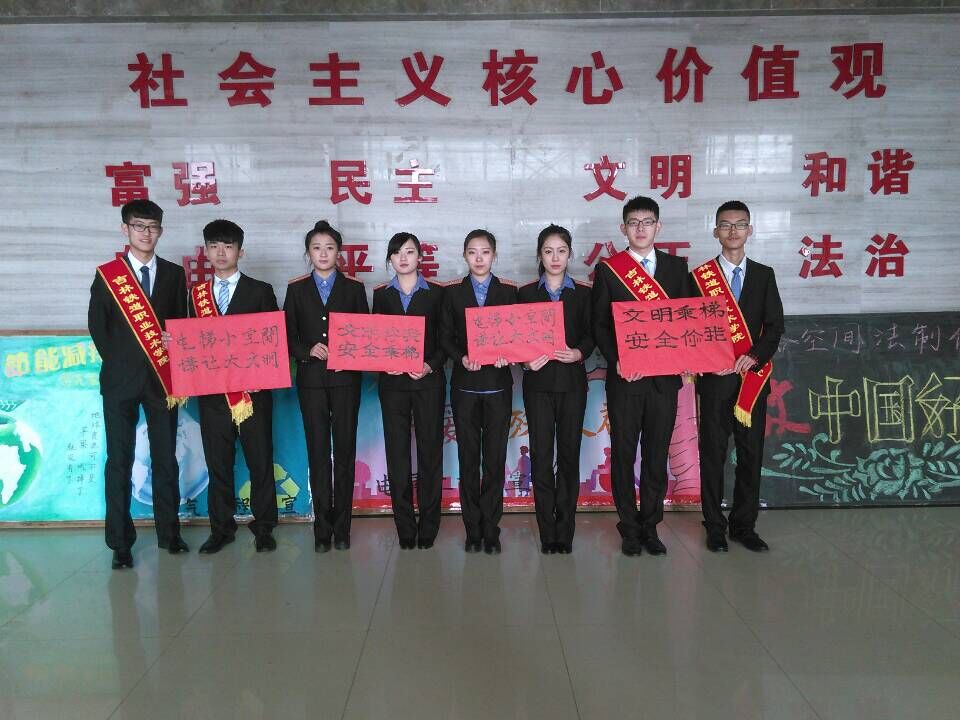 3月30日早7点30分,教学楼一楼电梯口出现了数名身着正装的同学,举着“电梯小空间,谦让大文明”、“文明你我,文明乘梯”的标语牌。
