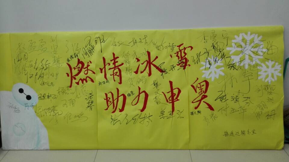 为助力北京联合张家口申办2022年冬奥运会,铁道运输系团委带领同学们行动起来,于4月1日发起“燃情冰雪,助力奥运”主题签名活动。